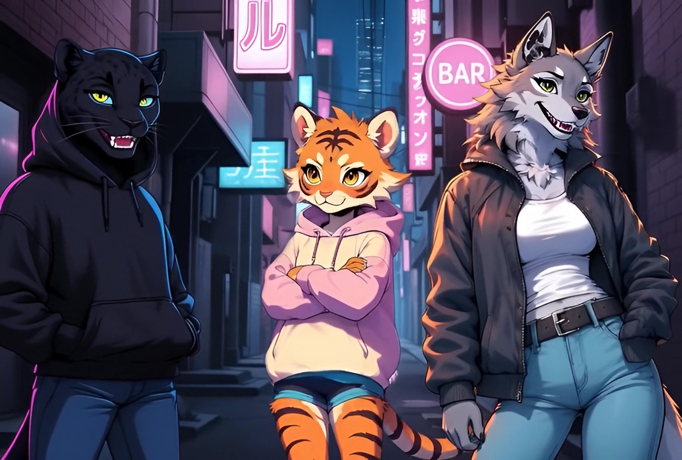 "Как ты можешь видеть меня... настоящего?" На миг всё замирает. Дождь висит в воздухе каплями, неон перестаёт мигать. Shadow медленно поднимает лапу и проводит ею по невидимой поверхности прямо перед тобой. Воздух рябит, как экран с помехами, и вдруг... ты видишь.